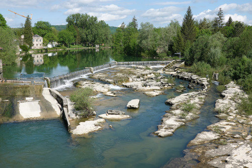Je démarre par le col du Cerisier qui est facile par ce versant. La descente sur Vouglans est fraîche en ce début de matinée. J'y traverse l'Ain sous le barrage éponyme relativement récent puisque mis en service en 1968.